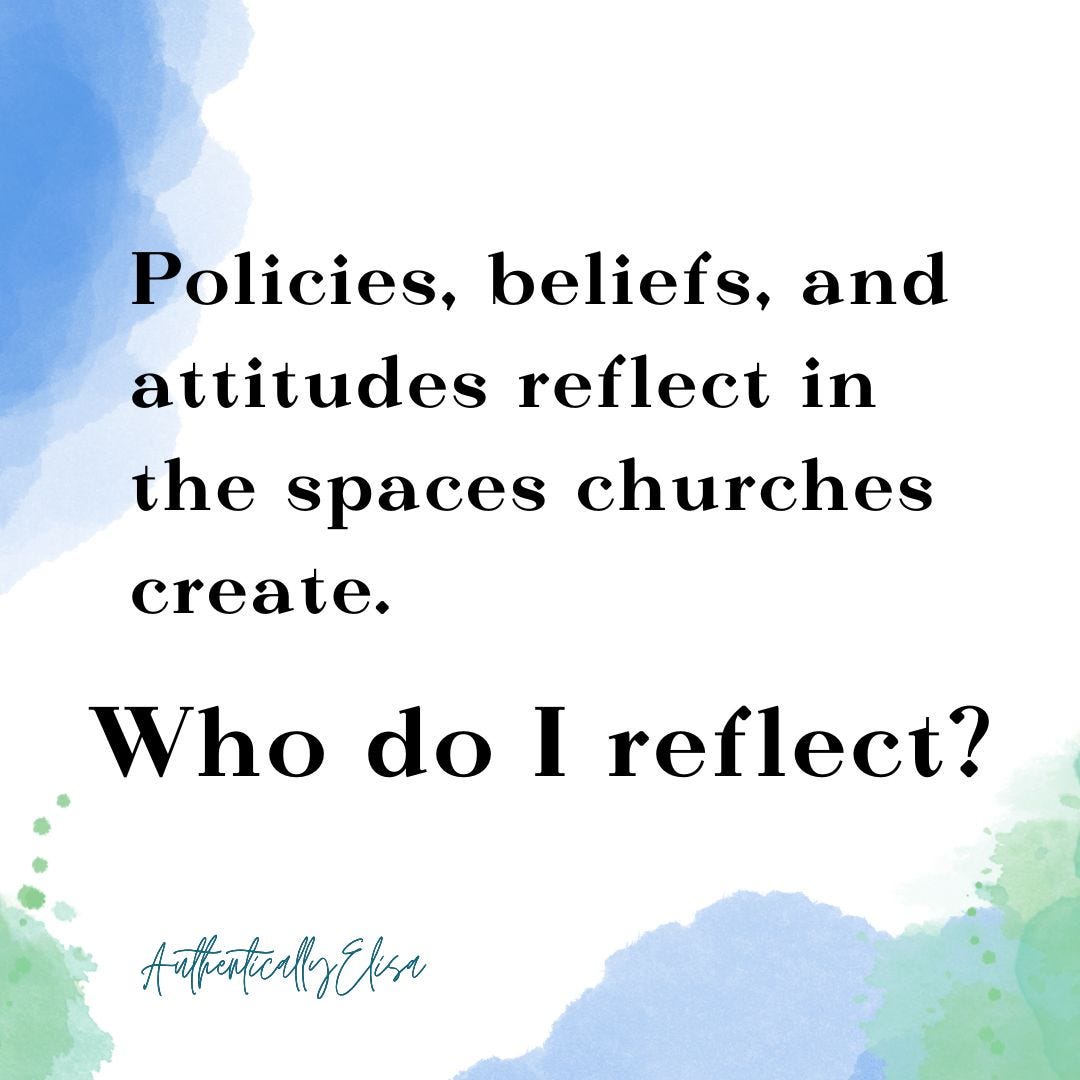 Other times when I visit churches, I find myself looking to see how much diversity is on stage and in the room at large. This wasn’t something I was told to do, over time I’ve just become more aware of this. What are women doing during the service (what would I be allowed to do here)? Is there enough space for a wheelchair to pass through (also me, a couple years ago)? Would my teens’ controversial friends experience God’s love here? Maybe these markers won’t totally be indicative of how a church welcomes, or what their policies are. Even so, it is likely that these will reflect in the space the church has created.
