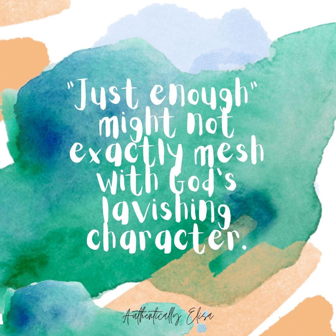 I was trying to be content with the meager water I had—I’m in a wilderness after all. But I forgot that there is often an oasis in the desert. I keep saying God gives us wanderers “just enough,” without realizing that “just enough” might not exactly mesh with God’s character. Because isn’t God good? Wouldn’t that character trait give him the freedom to lavish, not just do the bare minimum?